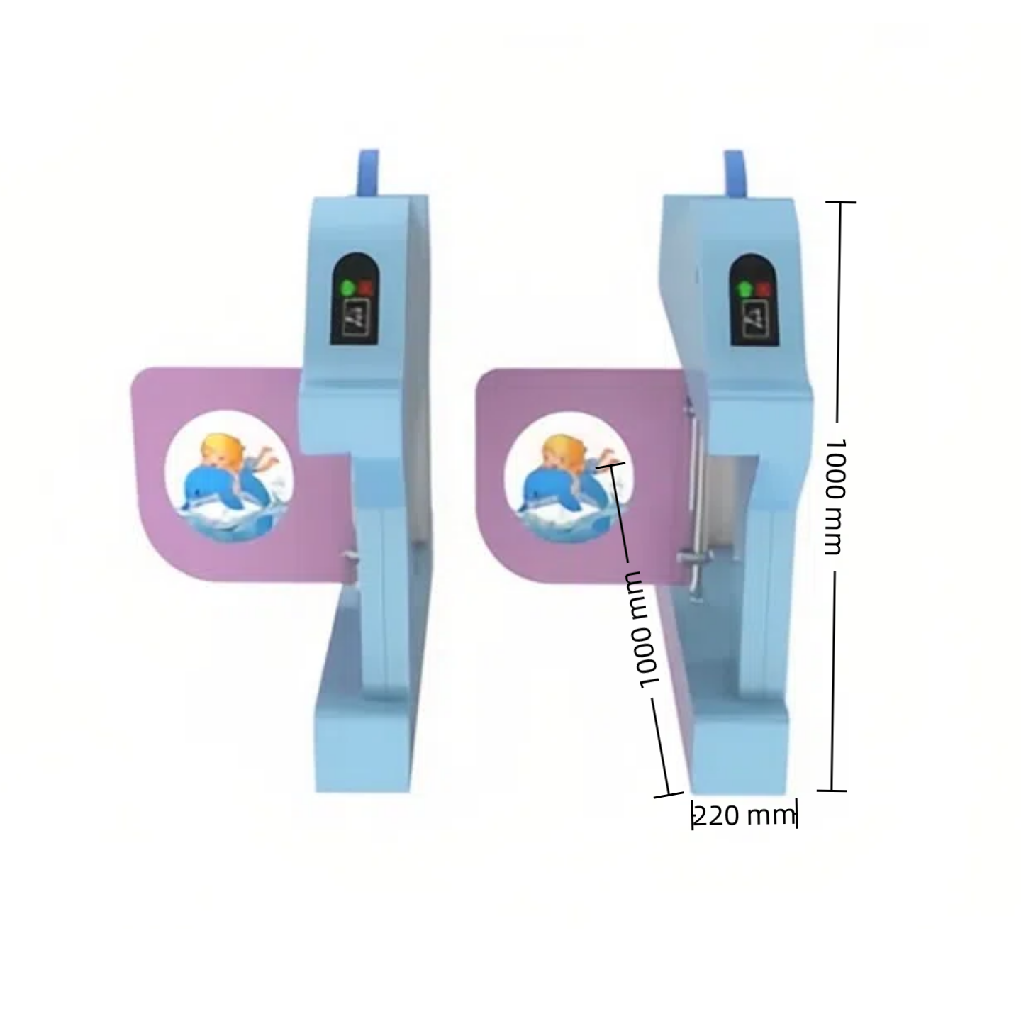 Ukubwa wetu wa lango la kiwango cha swing turnstile ni 1000mm (urefu) x 220mm (upana) x 1000mm (urefu) na uzito kuhusu 45kg. Ukubwa customized inaweza kufanywa kwa ombi.